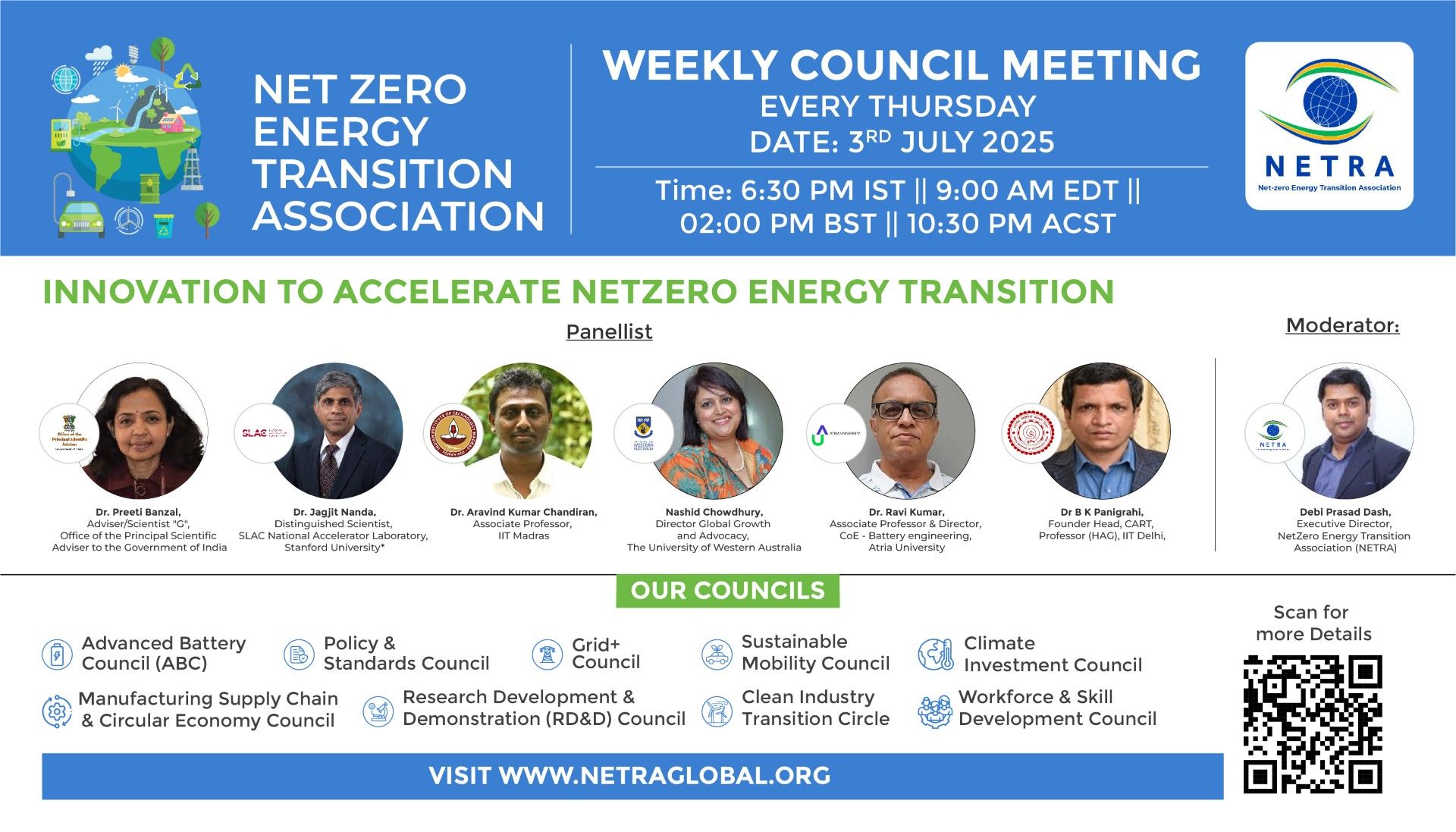 To ensure depth and continuity, NETRA has established nine focused Councils, each bringing together experts and stakeholders around a key pillar of the net-zero transition. These include: